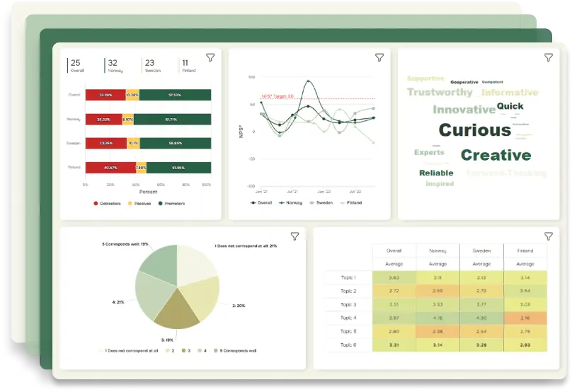 Verwandeln Sie Antworten in Erkenntnisse – mit klaren Dashboards, automatisierten Reports und konkreten Maßnahmen.